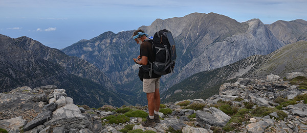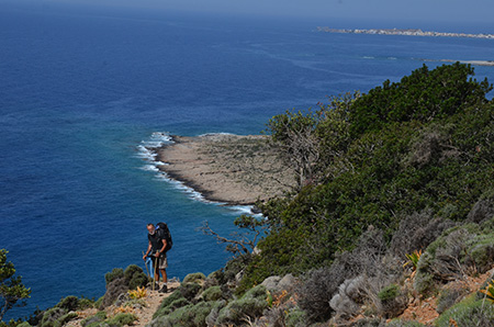 Le E4 traverse les trois principaux massifs montagneux qui dominent l'île : les Lefká Óri (2 453 m) ou Montagnes blanches à l'ouest, le massif du mont Psiloritis (2 456 m) au centre (le point culminant de l'île) et le massif du Mont Dikti (2 148 m) à l'est. L'extrémité orientale de la Crète comporte aussi deux massifs plus modestes, Orno Oros et Orno Thriptis. Entre chaque massif, le E4 emprunte souvent des pistes ou des routes. Ce n'est pas un itinéraire de haute montagne mais les bâtons de marche sont utiles ainsi qu'une paire de bonnes chaussures. La progression, souvent hors sentier, dans le lapiaz est redoutable. Nous avons choisi de porter notre tente ainsi que le matériel de bivouac. Les nombreux villages rencontrés facilitent le ravitaillement. La gestion de l'eau est toujours aussi cruciale. A part les Levka Or, Montagnes blanches, où il n'y a pas d'eau pendant deux jours, le reste du temps, fontaines et robinets sont assez fréquents. Pour poser la tente, pas de problèmes particuliers. Savoir que les nombreuses chapelles qui jalonnent le parcours offrent souvent des endroits de bivouac bien agréables... Pour le gaz du réchaud, on ne trouve pas de cartouches à valves. Dans de nombreux villages, il y a de petits supermarchés ou des quincailleries, style caverne d'Ali Baba, où on trouve des cartouches à percuter.
