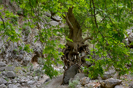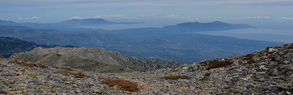 Un dernier col franchi à 2050m, et voilà que les gorges de Samaria se déchirent à nos pieds et filent vers la mer de Lybie.