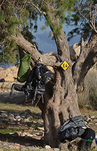Première halte à la Pélékita Cave qu’on trouve assez facilement grâce aux coordonnées de la première géocache que j’avais enregistrée sur le GPS. La grotte vaut le détour et les archéos qui y ont fouillé ont du se donner bien du plaisir. A partir de Pélékita, deux chemins… on choisit celui du haut, balisé par des marques rouges. C’est pas le meilleur choix ! Il vaut mieux rester sur celui du bas, le plus évident.