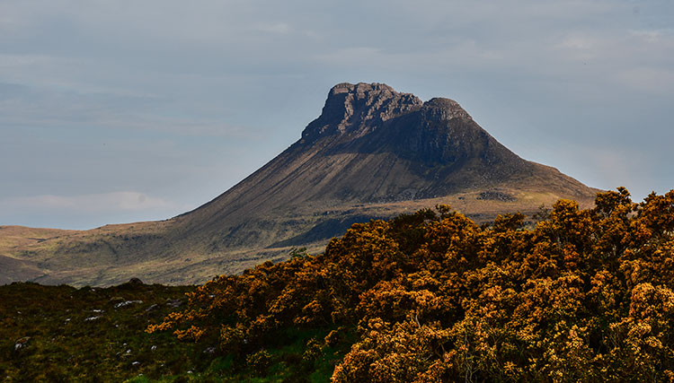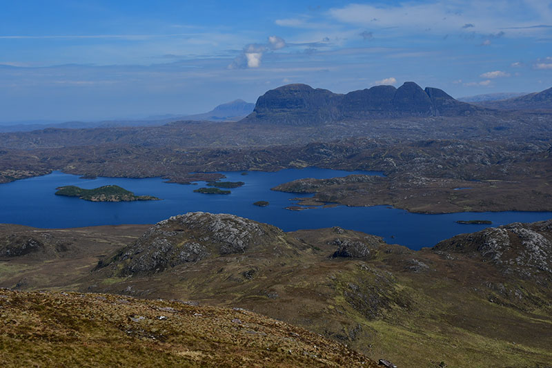 11 mai 2024. Camp face au Stach Pollaidh. Trouvé un beau bois de cerf. Single road superbe au milieu des lochs et bord de mer. Rando au Stach Pollaidh (600 m de dénivellé).