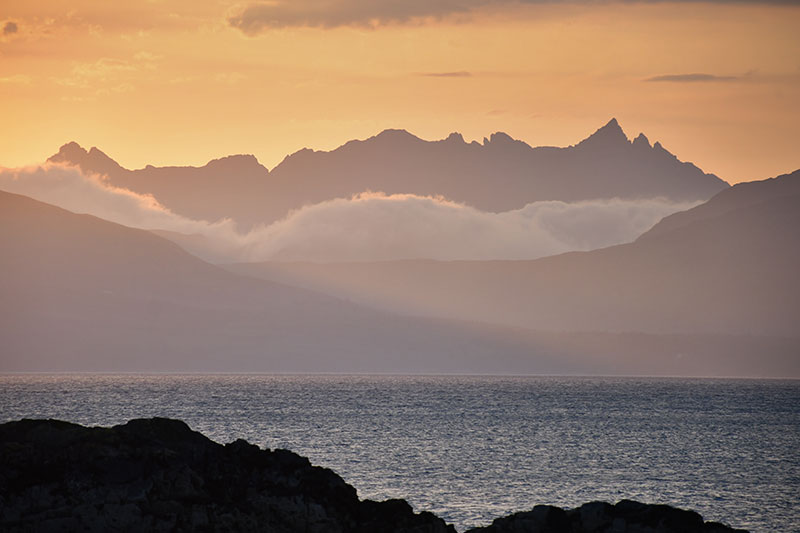 17 mai 2024. Plage de Tokavaig, face à la mar. Rando aux Fairy Pools. Ruine du château de Tokavaig.
