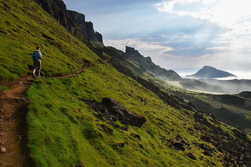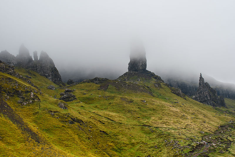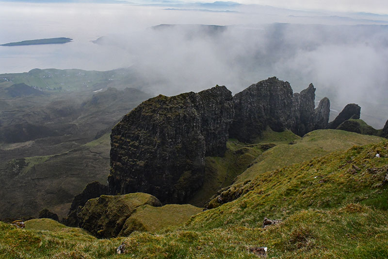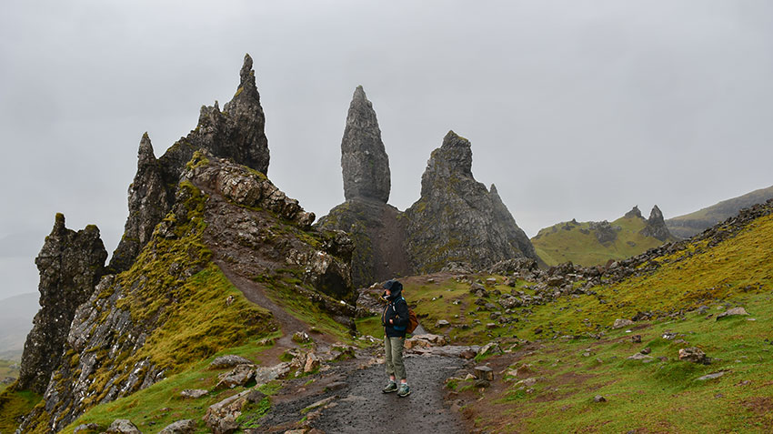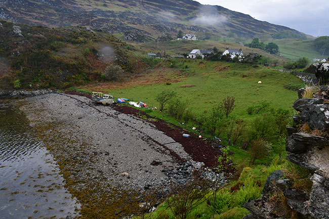 15 mai 2024. Baie de Kilmaluag, face à la mer. Rando Old Man of Storr (montée sous la pluie et géocache dans la descente). Musée de Skye Island Life.