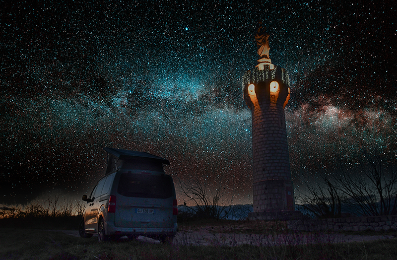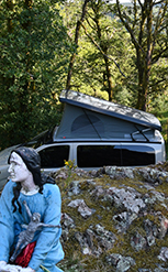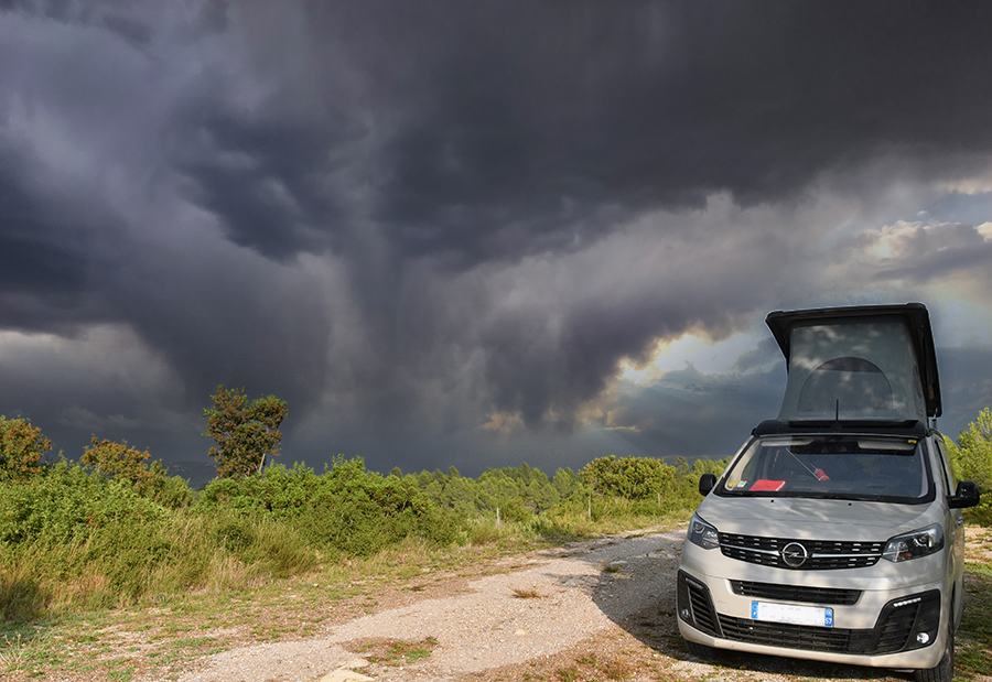 Un van pour vadrouiller. Ce n'est ni un chameau, ni un cheval de bât ou une roulotte mais ses fonctions sont quasiment les mêmes, vous transporter aux quatre coins avec juste ce qu'il faut pour satisfaire votre autonomie. Et on ne va pas s'en priver ! C'est un van aménagé (Crosscamp sur chassis Opel Zafira) avec 4 couchages (à deux, c'est confort), petit coin cuisine et même un chauffage pour les soirées un peu fraîches.