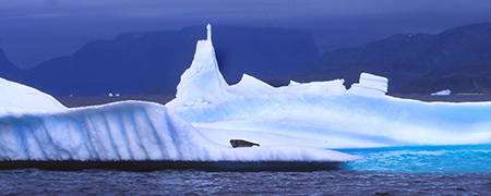 Le Tatérak charge quelques caisses de bière et c'est reparti ! La prochaine halte sera pour nous. Les baleines au loin font de rapides apparitions. A un moment, le bateau n'hésite pas à piquer droit sur un iceberg où un phoque placide nous regarde passer sans bouger bien qu'un marin ait sorti son fusil.