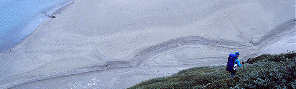 Samedi 24 aout. 12h30. Dans l'avion encore posé sur l'aéroport de Narsssarsuaq. Il pleut. Hier, 8 heures de bateau.. quelques baleines, un groupe de géologues danois rentrant d'une campagne de prospection. Grâce à eux, on se retrouve au foyer du marin à Qaqortoq, logés dans la cave encombrée, près de la laverie. Il n'y avait plus de place ailleurs... Ce matin, nos sacs sont pris en charge par la camionnette du foyer. Court transit en hélico avant de monter dans l'avion pour Copenhague. Il pleut, un ciel gris et bas... On s'en fout, on a la tête ailleurs, perdue quelques parts sur les rives de l'Isortoq !