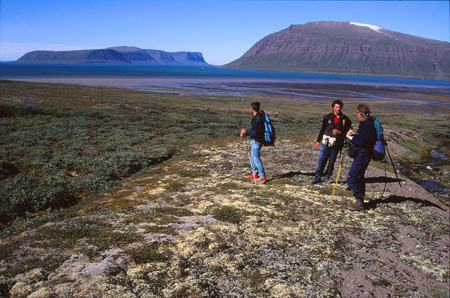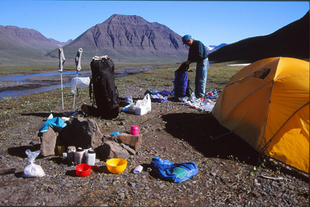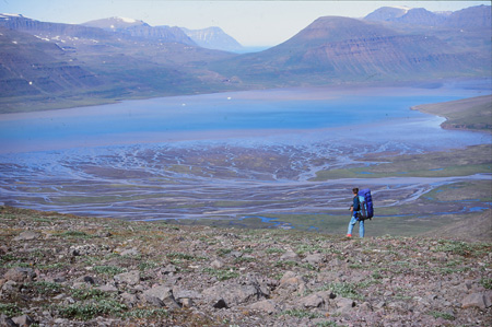 Longue journée avec un départ à 10h15 pour finir à 18h15. Pour ce deuxième trajet, on a choisi un autre passage pour éviter ce petit col un peu raide. On a choisi un canyon s’ouvrant sur la mer bleue au large. Echappatoire un peu pourri… Et long retour aux tentes… Mais putain, quelle belle vallée au nom imprononçable (Avallauqissat), cette rivière impétueuse aux innombrables bras, ces verts profonds et lumineux, ces perspectives qui filent dans tous les sens, cette ouverture aval sur la mer et l’amont vers notre nouveau monde dont on devine le début.
