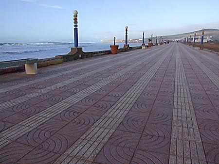Mer très agitée, brumes, soleil voilé, bonne température et balade sur la plage fleurie de plastique e tout genre. Nombreux sont les marocains qui viennent se promener ici en couple, en copain et en famille. Ambiance très calme et sereine.