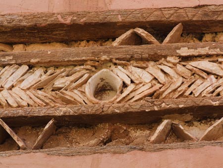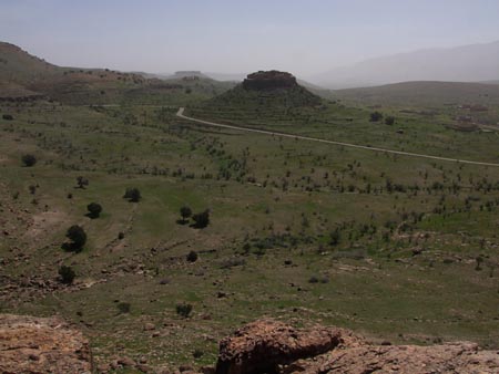Dimanche 14 mars Laissé 20 dirams de pourboire au serveur souriant de l’hôtel qui avait mis de côté une écharpe oublié sur le dos d’une chaise… Superbe route via Tanalt et Idaougnidif. La première partie emprunte la basse vallée d’Ameln puis la quitte pour grimper vers un col d’où semblent partir pleins de beaux endroits à balade (prendre la borne qui indique Aït Messaoud, Aïd Taleb, Tanalt). Route très aérienne, superbe cascade… A quoi rêvent les petits vieux assis au bord des routes et ne regardent que le petit caillou qu’ils titillent du bout de leur canne ? Pris un stoppeur qu’on dépose à Tanalt. La route jusque Idaorgnidif est très belle aussi, très montagneuse. Dans ce village, on rejoint la grande route classique de Tafraout à Aït Baha : superbe vallée aussi avec de petits villages fortifiés en haut de « plats à tajine », des micro falaises avec des abris sous roches qui ne demandent qu’à être prospectés… Faudra revenir dans ce secteur !