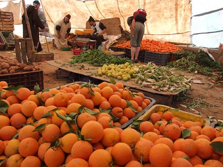 On passe à l’hôtel Salama, au cas où… et bien sûr, le gardien nous trouve une chambre de libre : 240 dirams pour une chambre très luxueuse avec une télé qui fonctionne mais sans vue. On changera demain. Visite au souk où on achète plusieurs sortes d’orange sans retrouver les bonnes de l’autre jour à Tiznit.